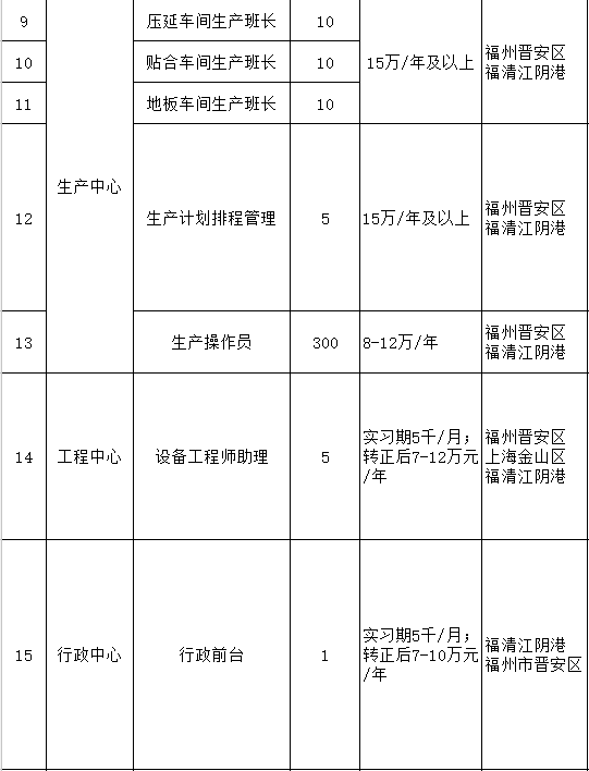 公司招聘部分崗位信息