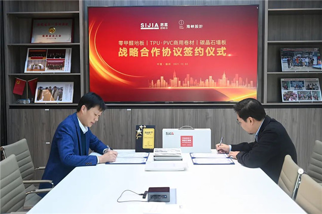 12月3日下午,思嘉超能芯與海峽設(shè)計(jì)的戰(zhàn)略合作協(xié)議簽約儀式在思嘉舉行,思嘉超能芯建材事業(yè)部總經(jīng)理劉俊與海峽設(shè)計(jì)林總出席儀式并簽約。