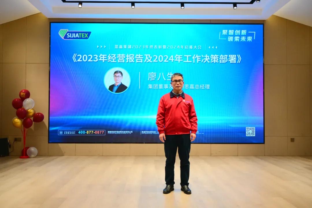 福建思嘉總經(jīng)理廖八生、集團(tuán)材料技術(shù)研究院院長(zhǎng)姚興南、集團(tuán)事業(yè)部董事總經(jīng)理王兆柚上臺(tái),分別從企業(yè)全年業(yè)績(jī)情況、材料技術(shù)研發(fā)、國(guó)際市場(chǎng)開(kāi)發(fā)等方面做2023年度總結(jié)及2024年重點(diǎn)工作規(guī)劃。